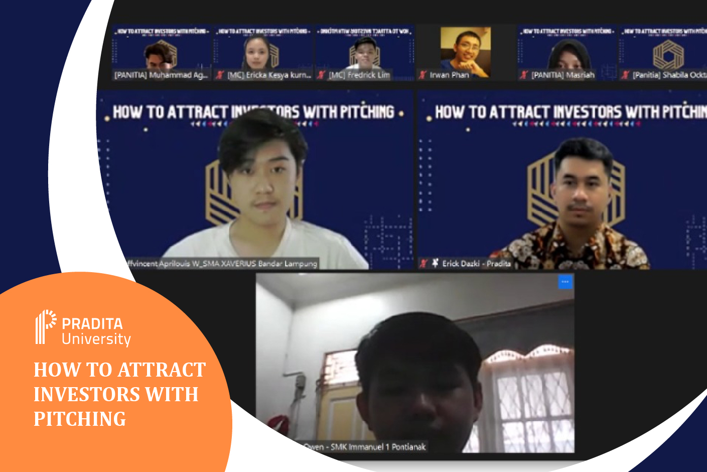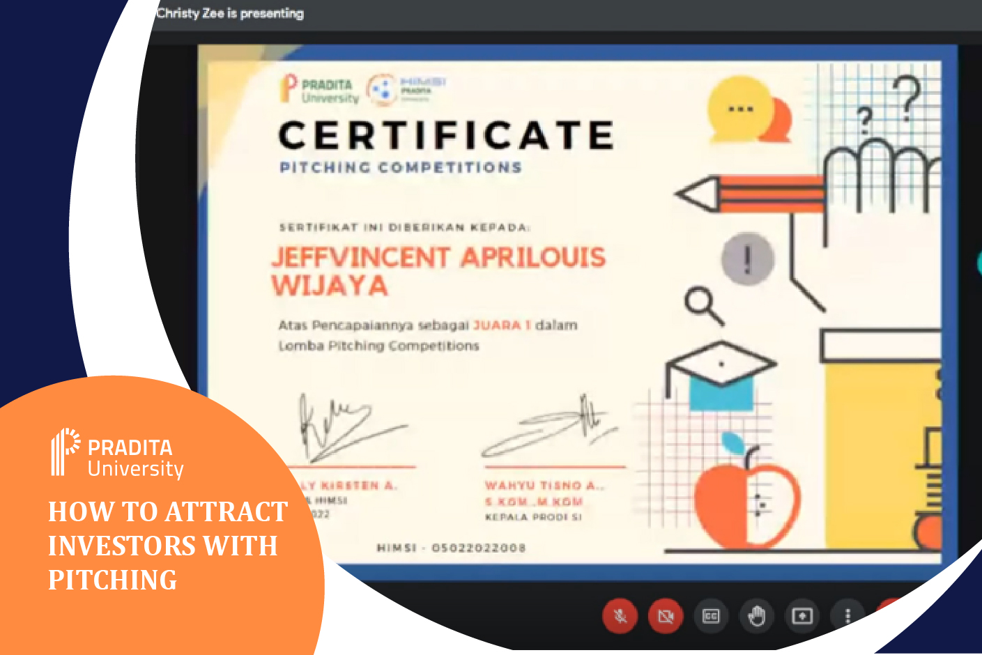 Hallo sobat Pradita!!! Pada kesempatan kali ini, HIMSI mengadakan webinar dengan tema “How to Attract Investors with Pitching”. Webinar ini berlangsung pada 29 Januari 2022 dengan narasumber Bapak Irwan Kurniawan Phan S.Kom, M.TI . Webinar ini juga dihadiri oleh Pak Wahyu Tisno Atmojo S.Kom, M.Kom selaku Kaprodi dari jurusan Sistem Informasi, Pak Erick Dazki S.Kom, M.Kom dan juga Pak Hendra Mayatopani S.Kom, M.Kom selaku juri dari lomba pitching, seluruh anggota HIMSI, dan teman – teman dari berbagai instansi pendidikan.