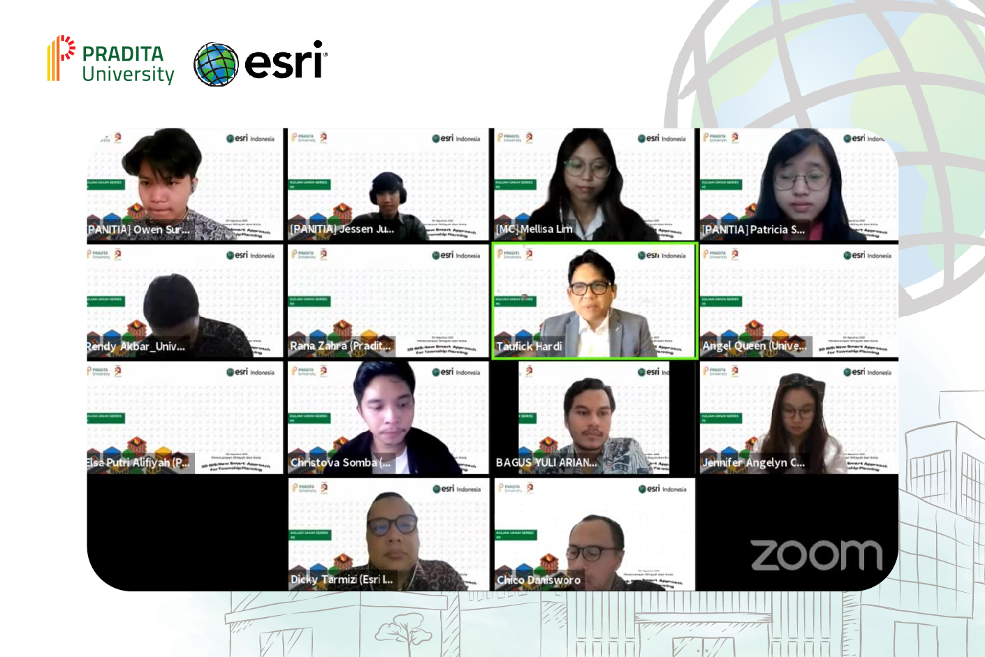 Pada hari Senin, 30 Agustus 2021 lalu Program studi Perencanaan Wilayah and Kota mengadakan kuliah umum dengan tema 3D GIS : New Smart Approach for Township Planning dengan Esri Indonesia. Acara yang dimoderatori langsung oleh kepala program studi Perencanaan Wilayah Kota, Bapak Rachmat Taufick Hardi, S.T. M. URP dihadiri oleh beberapa pembicara diantaranya Bapak Mohammad Archica Danisworo, Design Director PT. PDW, Ibu Widwiyaswati Roosita Dewi, Solution Engineer Esri Indonesia dan Bapak Rendy Akbar, Dosen Pradita University.