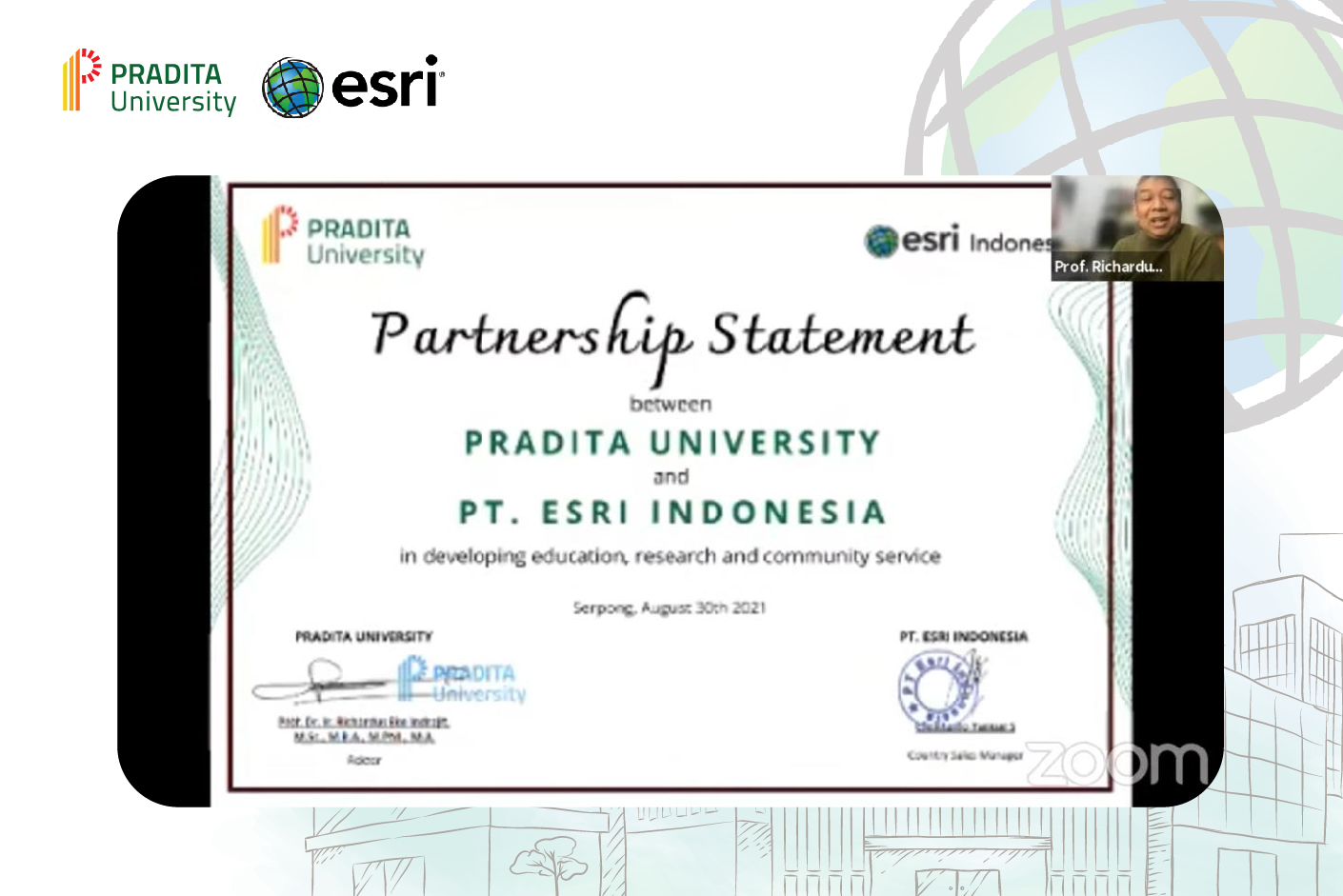 Kuliah umum ini juga ditandai dengan penanda tanganan kerja sama antara Pradita University, program studi Perencanaan Wilayah dan Kota dan juga ESRI Indonesia untuk memberikan peluang lebih lanjut khususnya untuk mahasiswa/i Pradita University kedepannya.