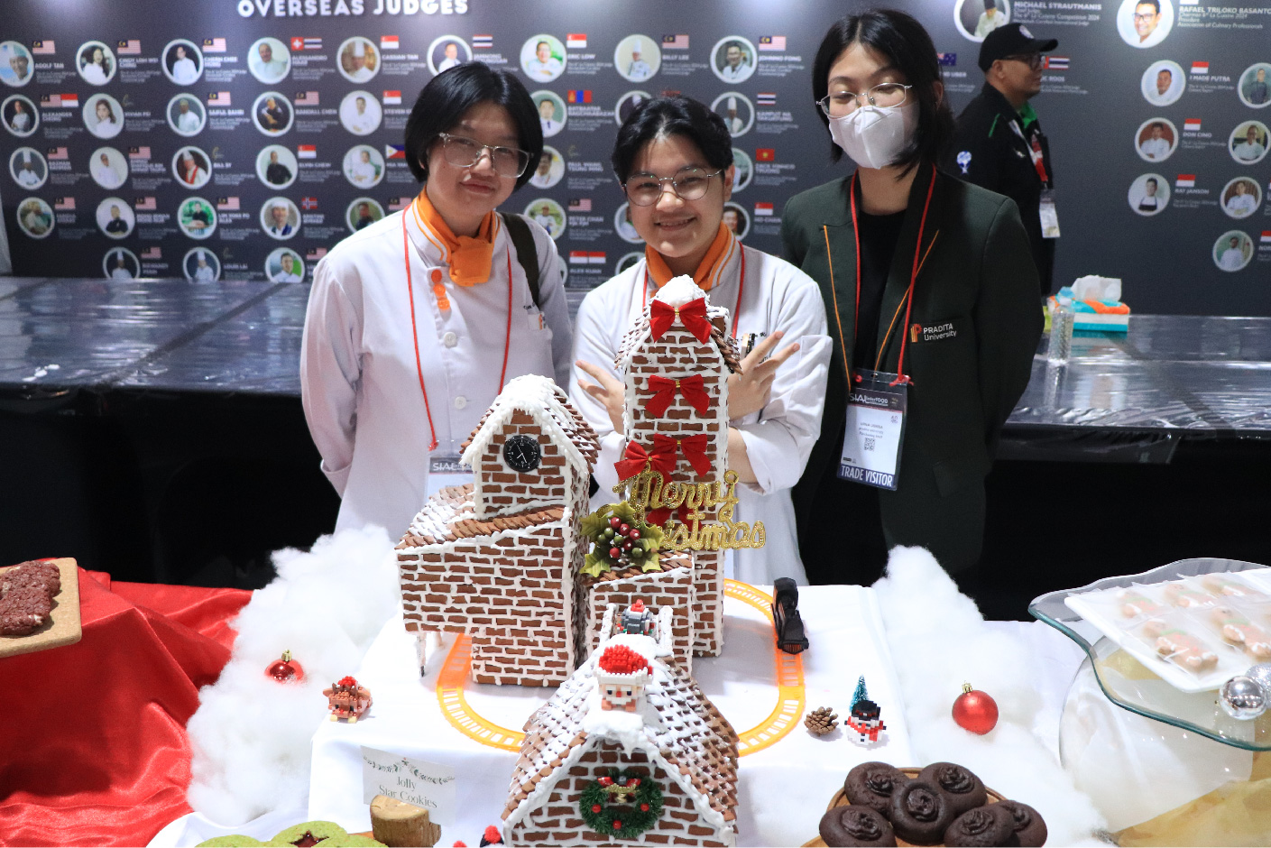 Dalam kompetisi bertaraf nasional yang diadakan di Jakarta International EXPO (JIEXPO) Kemayoran pada 13–16 November 2024, lima mahasiswa Culinary Arts Pradita University angkatan 2023 berhasil mengharumkan nama Pradita University dengan membawa pulang berbagai medali. Kelima mahasiswa tersebut antara lain Novia Dwi Safitri dan Kartikaning Tyas yang meraih Gold Medal dalam kategori SASA Nasi Tumpeng, Muhammad Ismail yang meraih Silver Medal dalam kategori Lee Kum Kee Korean Beef Maincourse, Jeremy Clement yang meraih Bronze Medal dalam kategori Japanese Food Maincourse, dan Daniella Jodie yang meraih Bronze Medal dalam kategori Western Plated Dessert.
