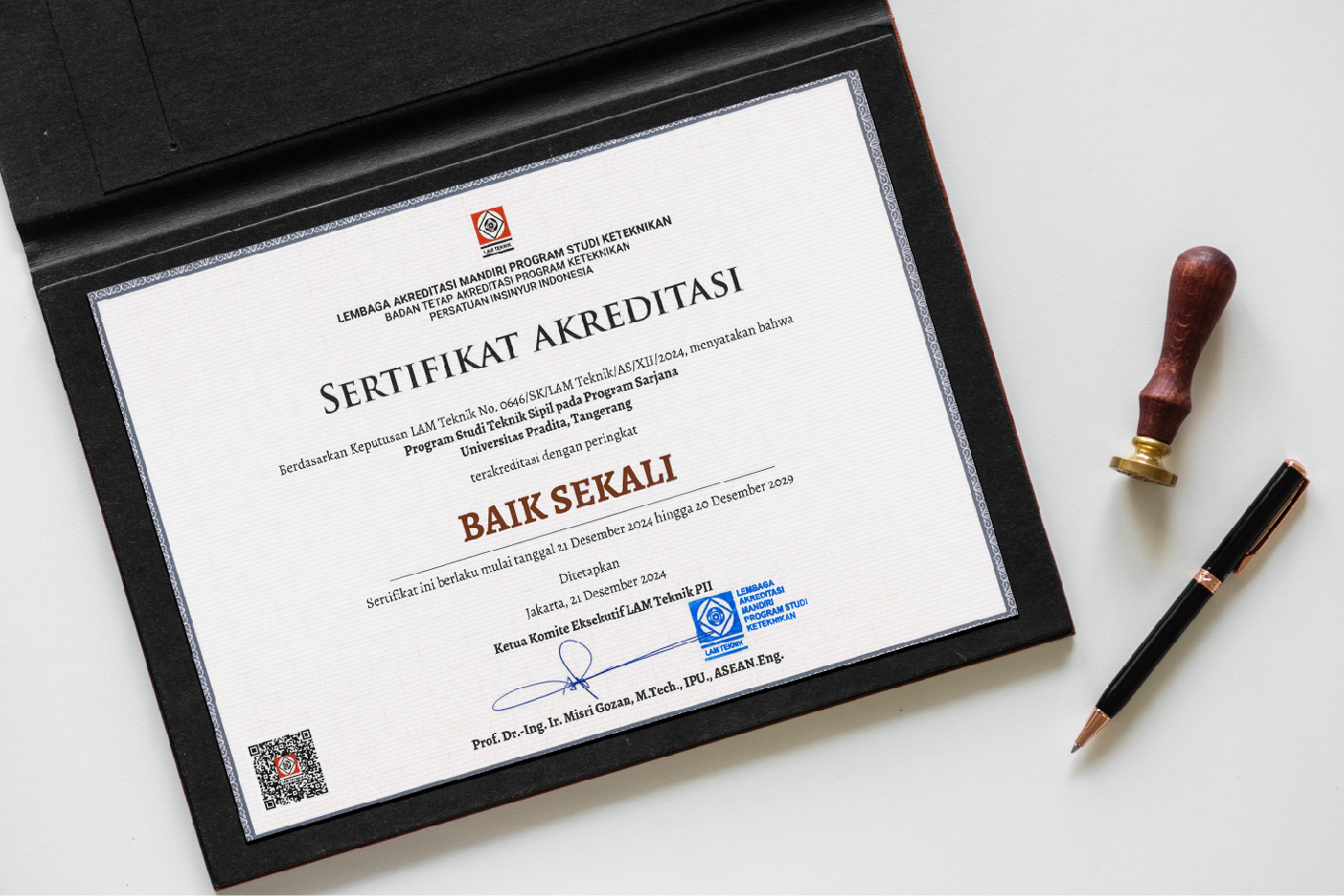 Penetapan akreditasi ini disahkan langsung oleh Prof. Dr.-Ing. Ir. Misri Gozan, M.Tech., IPU., ASEAN.Eng., seorang pakar teknik terkemuka yang menjabat sebagai salah satu pengurus utama di LAM Teknik. Prestasi ini mencerminkan dedikasi dan komitmen Pradita University dalam menyediakan pendidikan tinggi yang berkualitas, terutama di bidang teknik sipil.